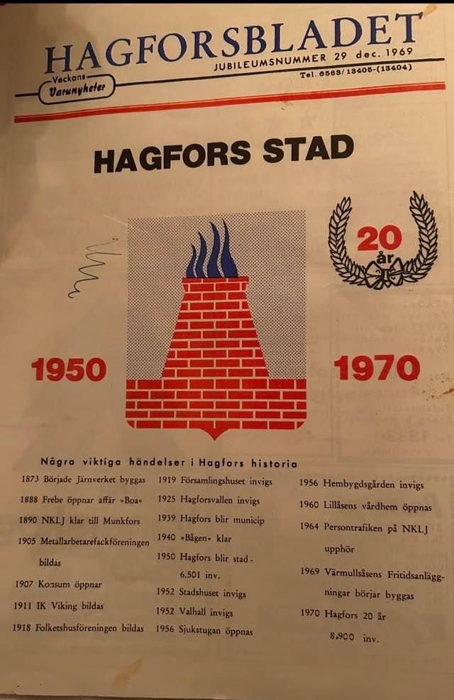 Hagfors firar 20 år och man berättar om viktiga händelser i staden.